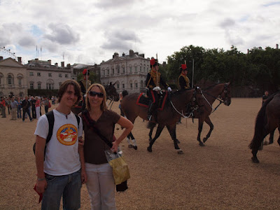 I thought we might feel like crazy tourists walking with a camera around our neck and a child on John's back but on a Saturday morning in London apparently Everyone is a tourist. We were not alone with a camera around our neck walking the streets, I think we actually would have been out of place without one. If we had another 30 minutes I might have tried to drag my family another 1/2 mile to Harrod's but we decided it was just too far to risk missing our flight. We walked back through St. James Park. It was, again, a perfect English experience. We got back to our train station which was across the street from the big Museum there, forget the name, and the big ferris wheel they call "the London Eye". We grabbed a bite to eat at Quiznos (not exactly the pub food I was hoping for) and made it back to the gate moments before they started boarding. The best way to spend a 7-1/2 hour layover if you ever get a chance.